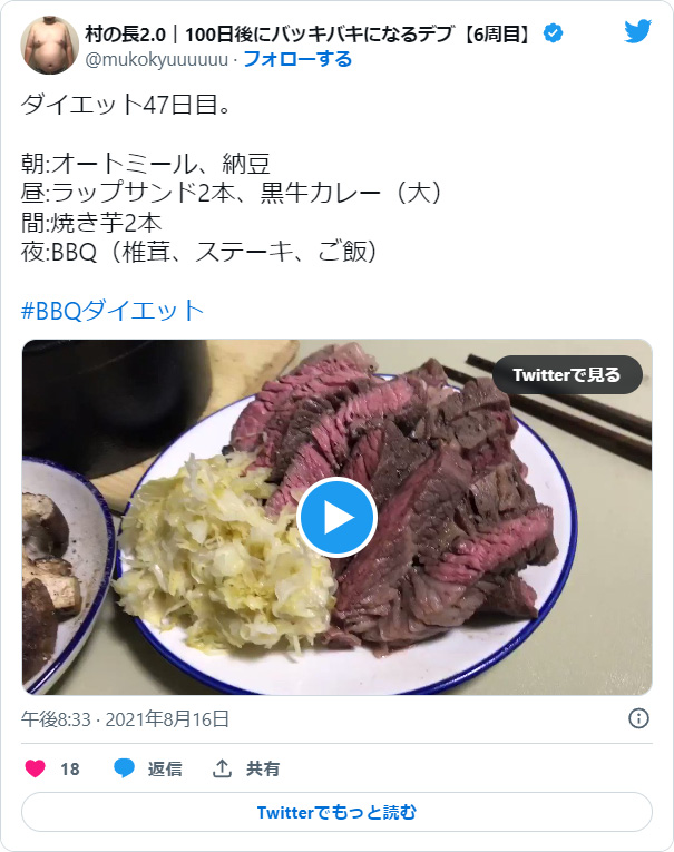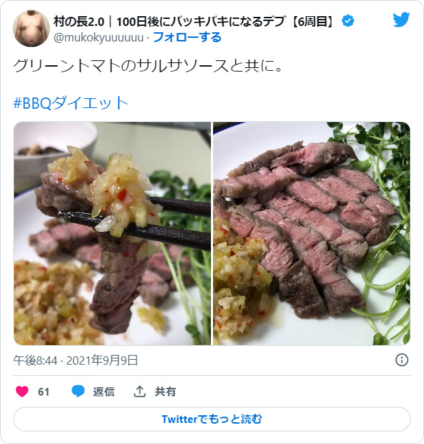 「BBQ食って痩せれるわけないだろ」というツッコミ待ちの、気をてらった逆張り設定です。
