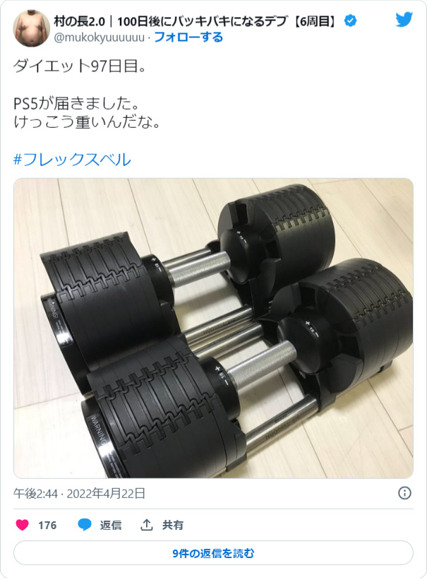 ジムで鍛えたおかげで高強度な重量を扱えるようになったのでフレックスベルの32kg(2kg刻み可変)を購入しました。