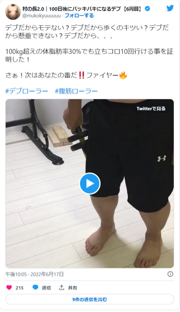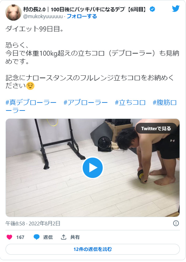 体重100kgでも、床べったりのフルレンジの立ちコロが可能であることを証明しました。