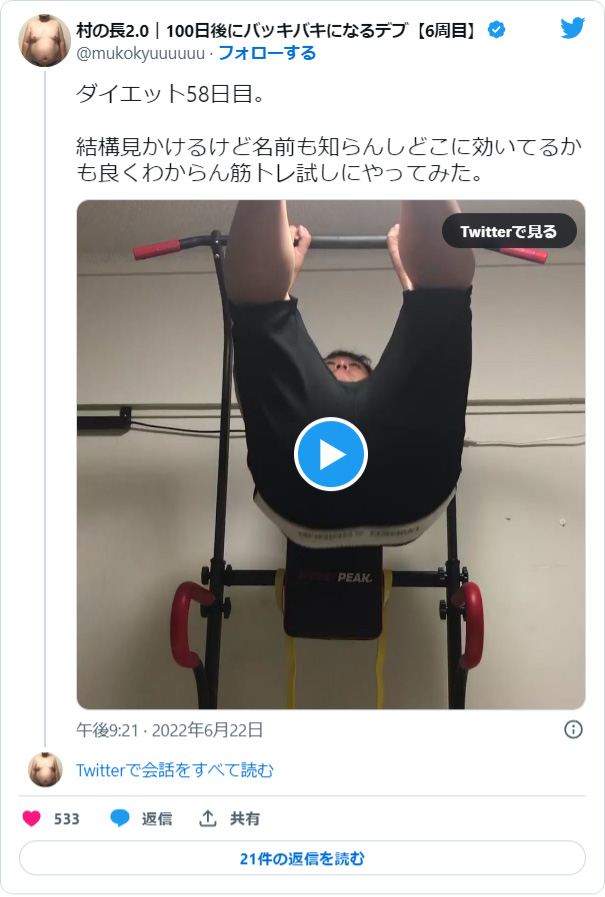 後半がフォームが崩れているので、今後はしっかり胸を張って10回行けたらいいな。