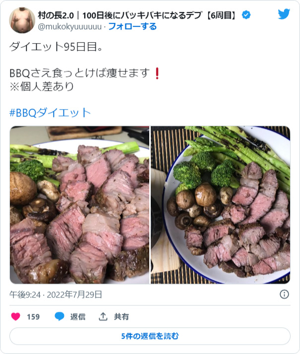 BBQダイエットってタグは日本で永遠に流行らないかもしれない。