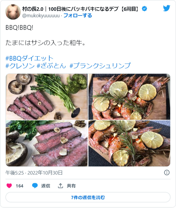 シーズン2は112kgから107kgで「-5kg」の減量。