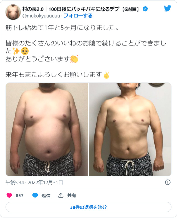 シーズン1は121kgから112kgで「-9kg」の減量。