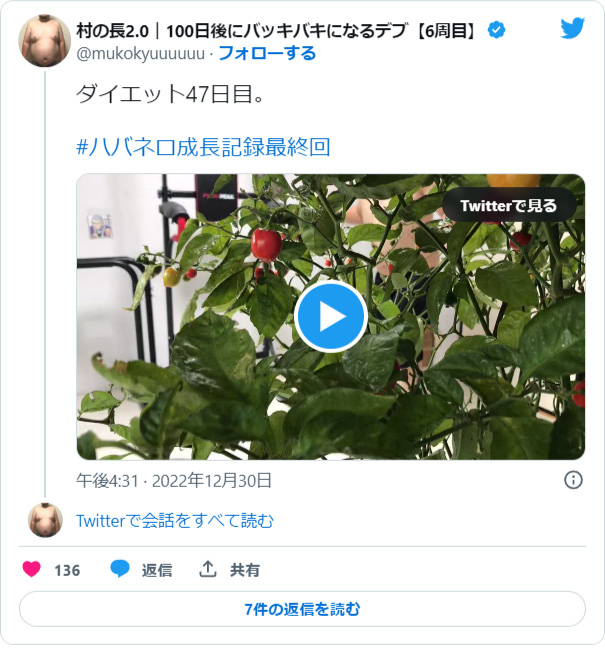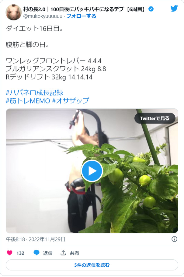 夏のトマト企画に続き、ハバネロの成長と筋肉の成長を楽しめるコンテンツ。