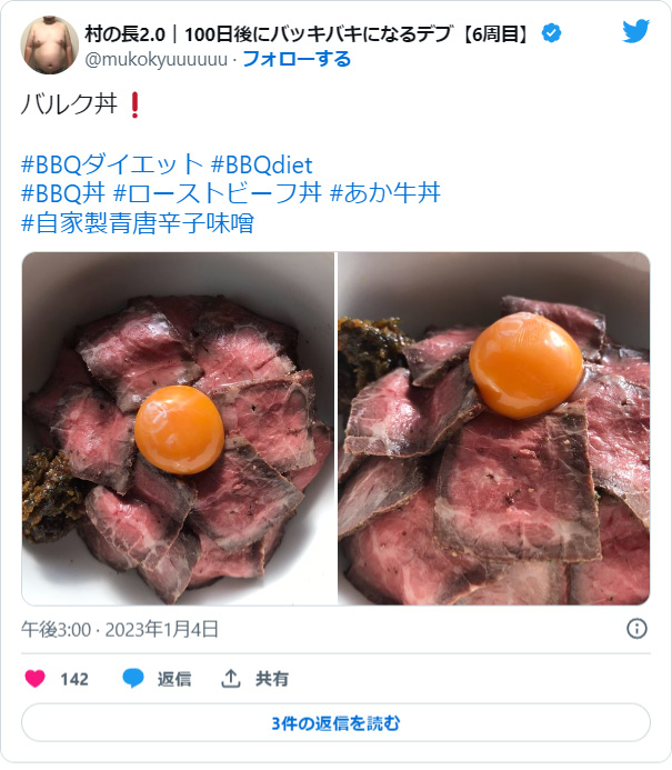 シーズン3は107kgから105kgで「-2kg」の減量。