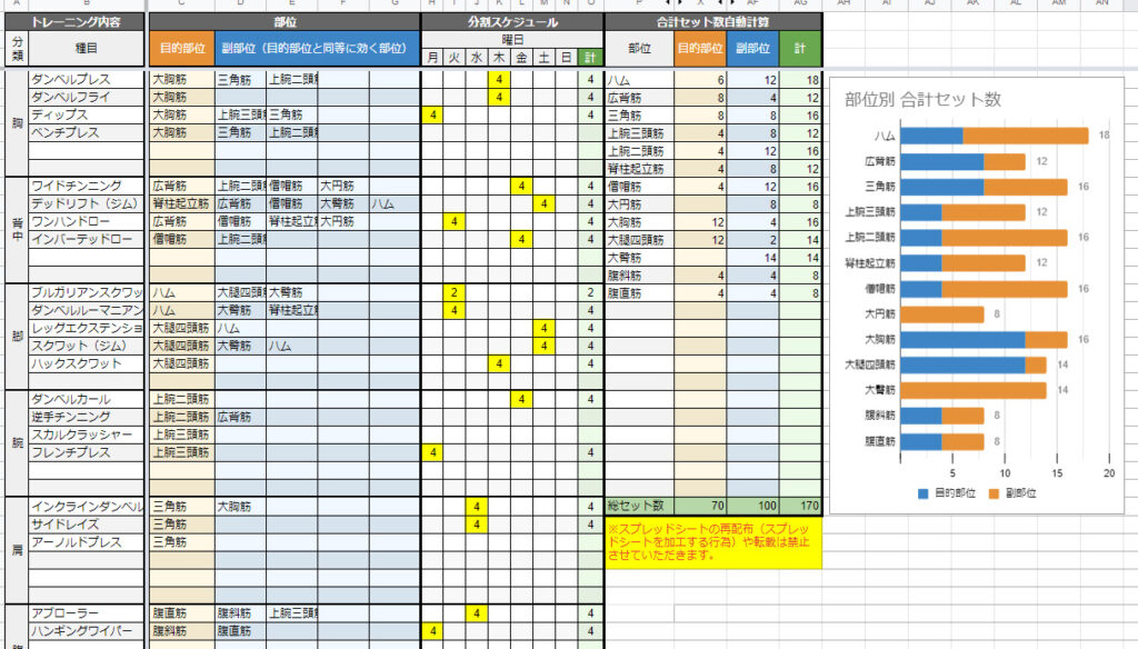分割法により全身をバランスよく筋肥大させる