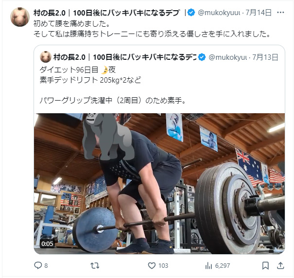 今まで結構無茶なフォームでデッドリフトをしても腰を痛めることはありませんでしたが、とうとう腰を痛めてしまいました。