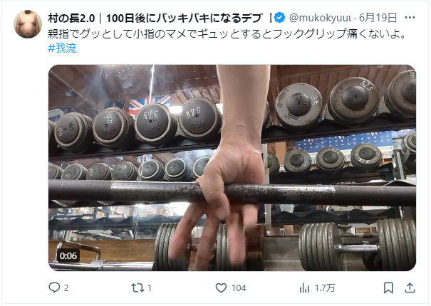 フックグリップで素手でのナローデッドでいきなり高重量を扱ったため、いつもと違う動きになってしまったのでしょう。