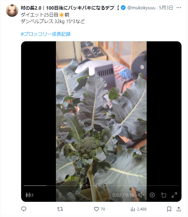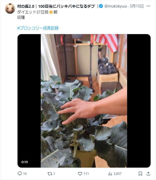 トマト、唐辛子に続く「筋肉と一緒に育てる作物シリーズ」でブロッコリーを育て始めました。