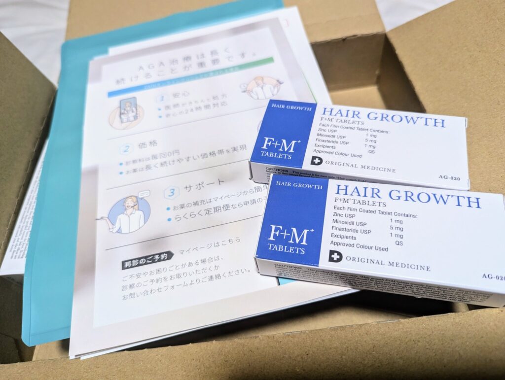 ビデオ通話で30分ほど?の診断してもらい、その1~2日後くらいに薬が届いたので、ハゲが気になった3日後にはAGA治療を始めることができました。