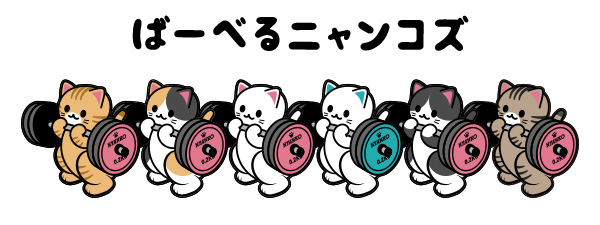 ばーべるニャンコは白猫、白猫(亜種)、三毛猫、白黒、茶トラ、キジトラの6種類(2023年4月現在)。
