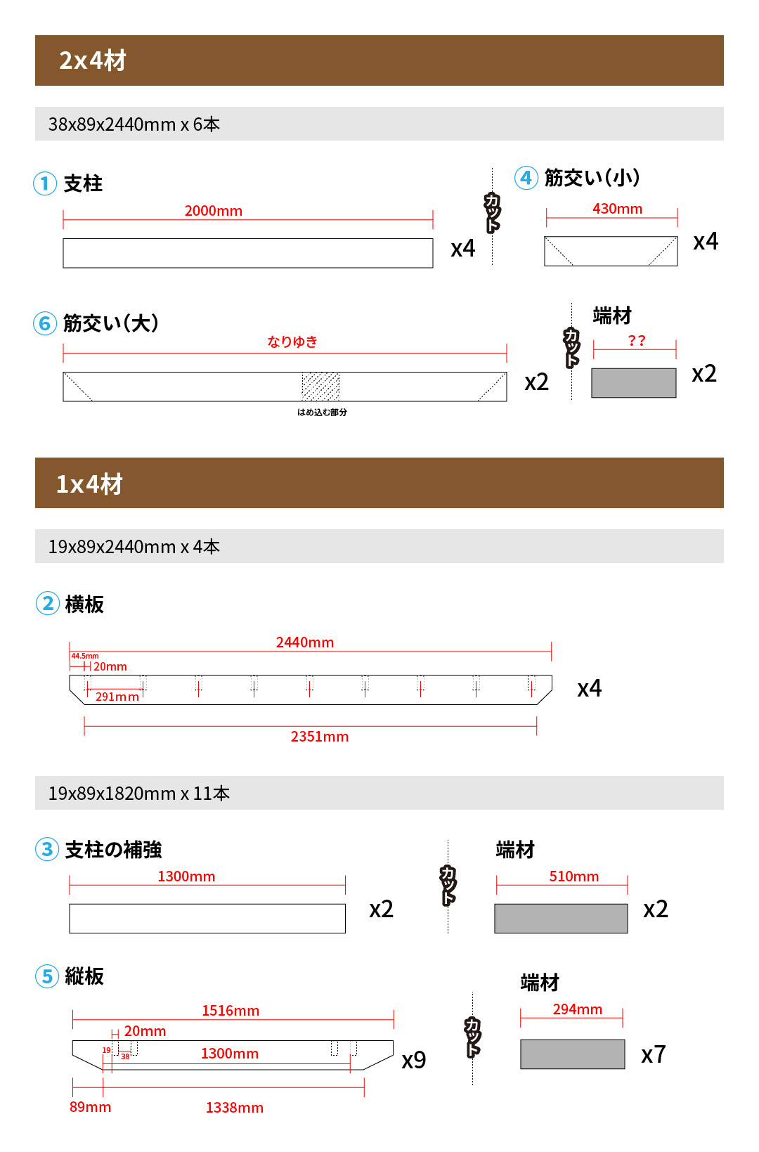 まずは木材をカットして材料を揃えます。