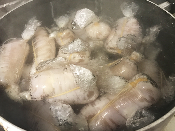 内圧をかけながら縛ることによって湯が侵入しませんし、旨味と肉汁を閉じ込めることができます。