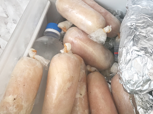 ラップで縛らなければならない訳ではありませんので、ジップロックでもアイラップでも構いませんが、ジップロックやアイラップで包むのはコスパが非常に悪いのと、ハム状に綺麗に整形しにくいのでお勧めしません。