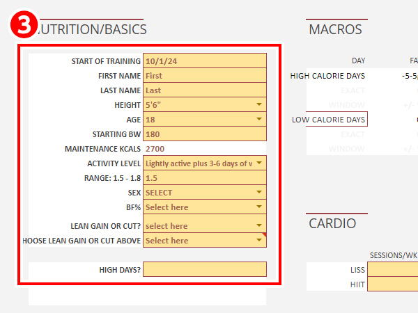 栄養・基本情報の入力